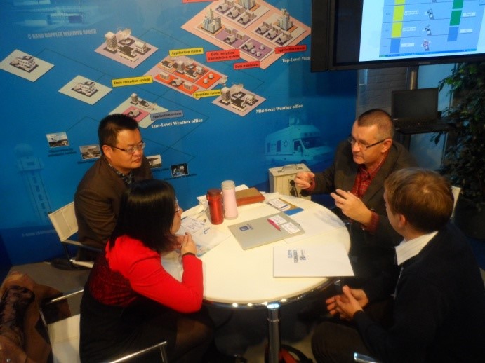 展会上,我公司以演示和现场推介的方式向所有来宾介绍了气象系统整体解决方案的功能和应用场景,同时以视频滚动播放配合现场推介的方式循环介绍了我公司的主营业务、发展前景、气象和空管领域整体解决方案、服务和产品,给客户留下了深刻的印象。来自美国、比利时、意大利、荷兰、波兰、捷克、阿联酋、哥伦比亚、等国的客户和同行参观了我公司的展台,详细询问了公司的气象雷达、气象软件等系列产品。