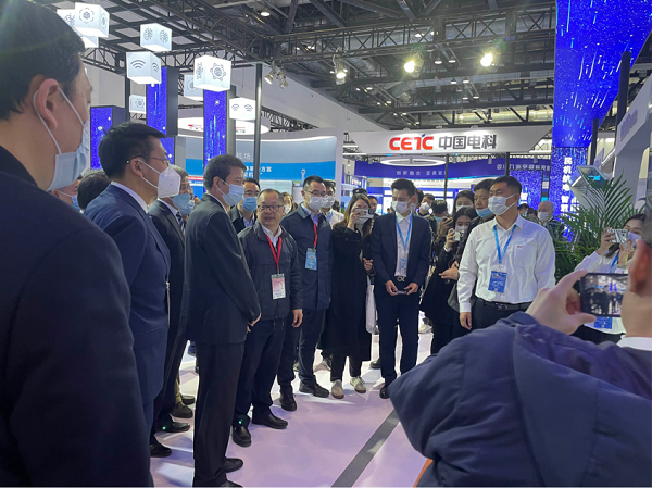 中国民航局副局长崔晓峰、总工程师殷时军等领导在中国电科总工程师何文忠、产业部副主任刘伟的陪同下参观了中国电科展台,一众领导对国睿科技的监视设备和航空气象应用系统表示了关注。