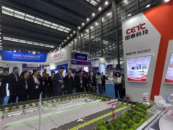 中国气象局副局长毕宝贵等一行领导和专家莅临国睿科技展台指导工作,并对国睿科技研制的全国首部S波段双偏振相控阵天气雷达表示高度关注。