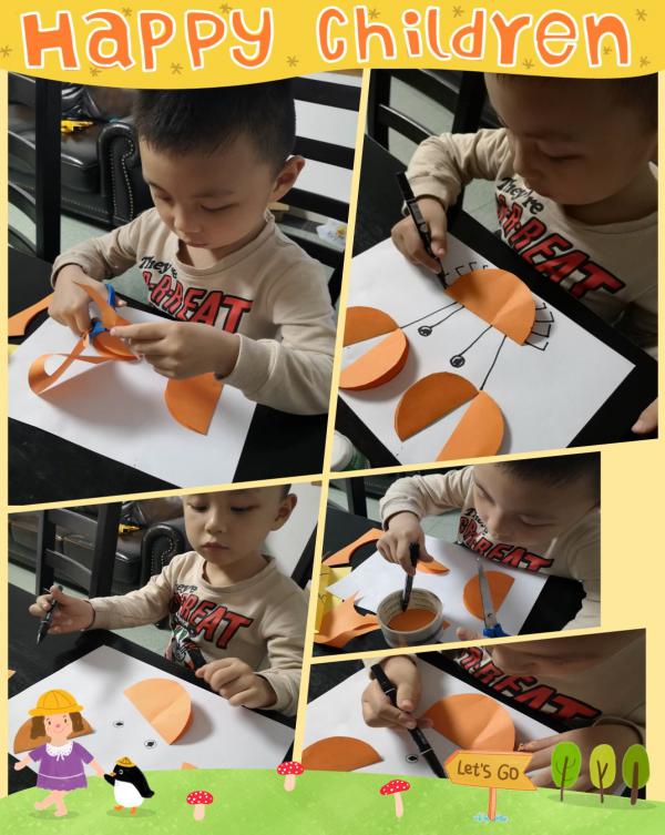 “六一”儿童节,我和宝贝一起用彩色画纸拼搭了一只可爱的螃蟹!宝贝可棒啦!自己动手做了两只大大的钳子,八只腿画得可爱极了!