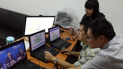 8月16日开幕式当天,凌晨3点,我们陪伴着预报员开始了今天的第一次预报。早晨9点,预报员通过我们的系统分析出下午开幕式期间有极大可能下雨,并及时向青奥组委进行预警。预报大厅气氛空前紧张,近百名预报员与专家同时高频度使用我们的系统进行天气分析,青奥保障团队顶住压力,始终让系统保持稳定、快速的运行。下午16点,气象专家通过系统监测到奥体中心开始下雨,并预计将持续至开幕式结束。此时,我们接到气象保障中心临时增加生成卫星加密观测产品的任务,团队在极短的时间内,将卫星产品生成的时间间隔由30分钟加密至6分钟,为人工影响天气决策进行了强有力的支撑。在开幕式期间,我们的系统对这次天气过程进行实时动态跟踪,始终保障了预报员在第一时间拿到第一手资料。
