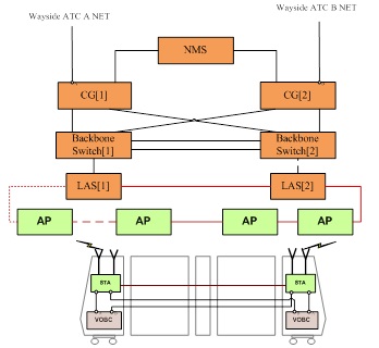 该系统由轨旁通信服务器(CG)、轨旁无线接入点(AP)和车载无线电台(STA)等设备组成,可支持列控、PIS、CCTV等多种数据传输服务。