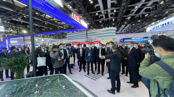 中国民航局副局长崔晓峰、总工程师殷时军等领导在中国电科总工程师何文忠、产业部副主任刘伟的陪同下参观了中国电科展台,一众领导对国睿科技的监视设备和航空气象应用系统表示了关注。