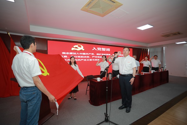 秉持理想信念,坚守初心使命。会上,新党员高举右拳宣誓,全体参会党员重温入党誓词,同过政治生日,在庄严的党旗面前,一字一句许下铮铮誓言。