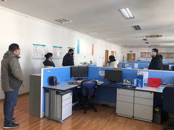 当天上午,吴迤总经理和王向阳书记还分别听取了公司防疫领导工作办公室近期防疫工作内容的汇报,以及各园区属地政府部门具体要求的落实情况,并在江宁园区和江北园区现场检查防疫工作、员工实际复工情况和食堂情况。