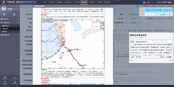 宁波市气象台9时通过“宁波市县一体化智能预报预警平台” 发布台风报告单,