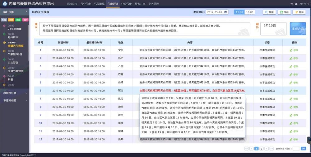 目前已在西藏、河北等地建立了省级综合气象服务平台,并在业务运行中得到高度认可。